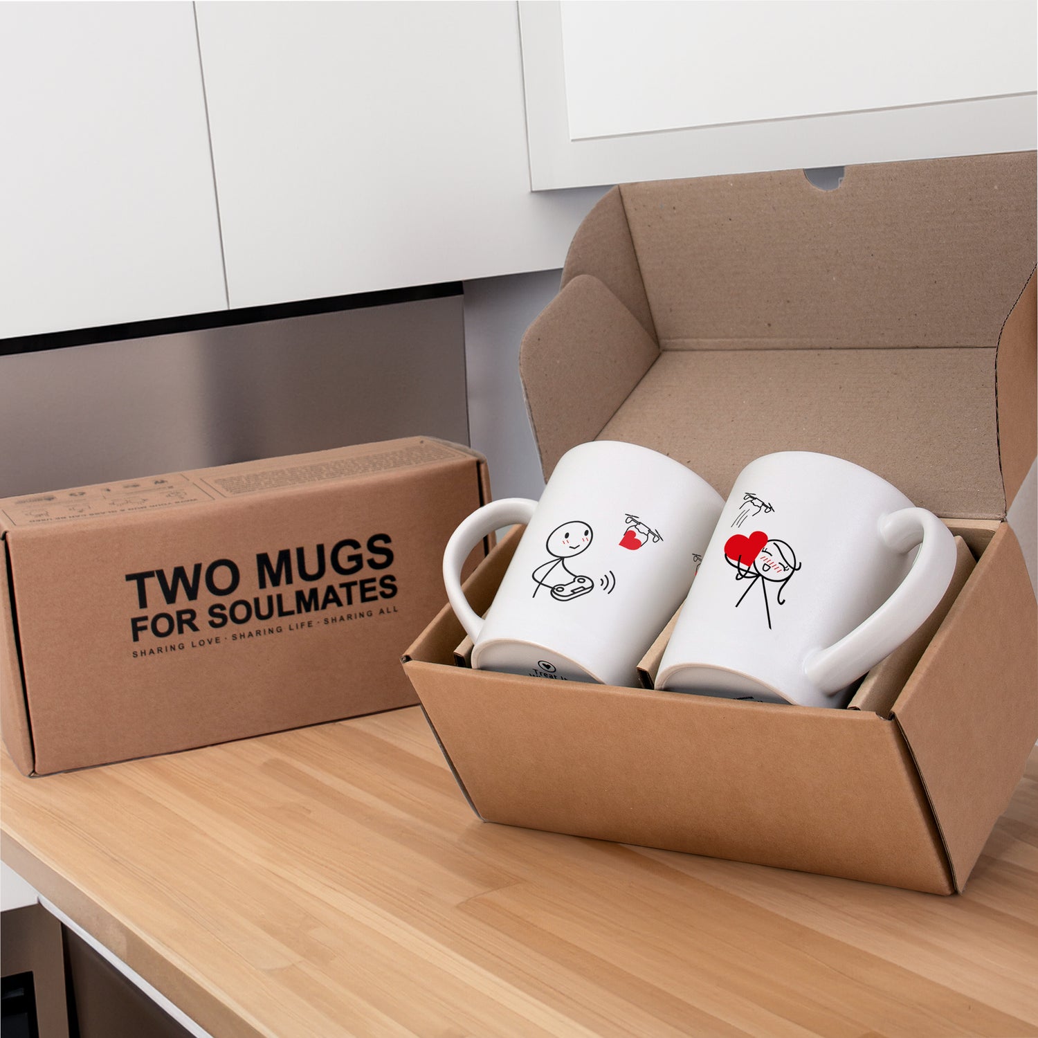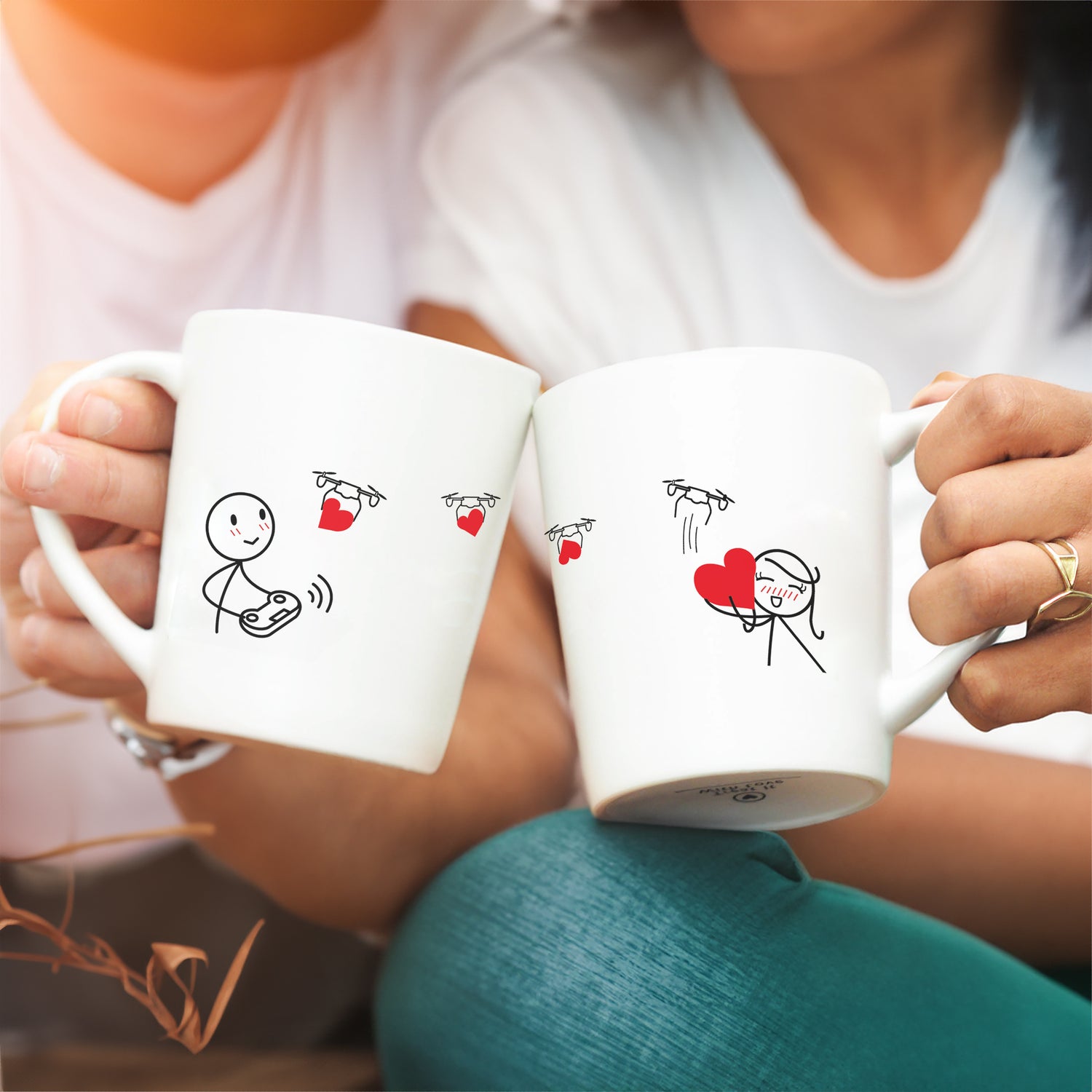 A love drone is on its way to you! This playfully romantic couple coffee mug set lets them know without a doubt that your coming together is meant to be. Invite them into your heart with this endearing gift for her.